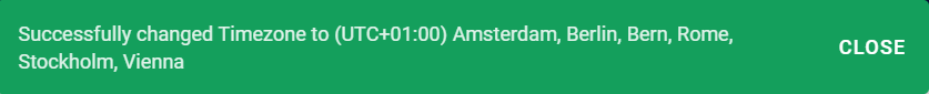 Select a time zone from the dropdown list. You see the following message.